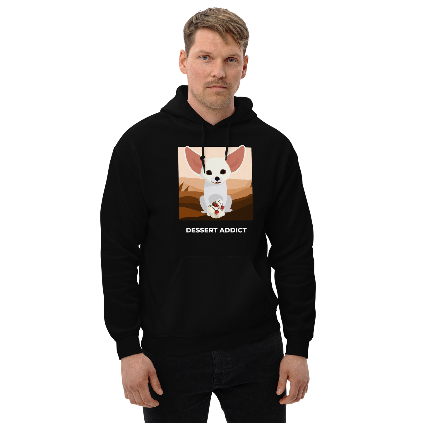 Crave dessert? So does your hoodie. 🍰 Our Funny Fennec Fox Hoodie features a sweet-loving fox and a Dessert Addict graphic that’s too cute to resist. Cozy fleece lining + snack-ready vibes = your new favorite treat. No actual dessert included… but highly encouraged.