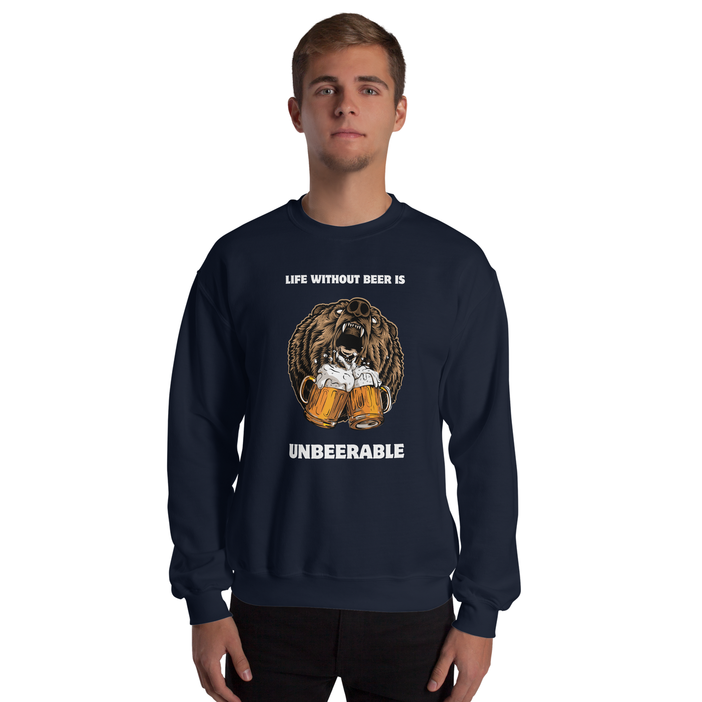 Life without beer? Unbearable. 🍻🐻 Our Bear Sweatshirt brings the laughs and the warmth with its “Life Without Beer Is Unbeerable” graphic. Perfect for brew lovers, chill nights, and anyone who takes their comfort with a cold one.
